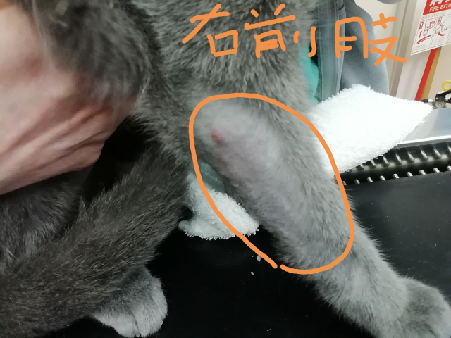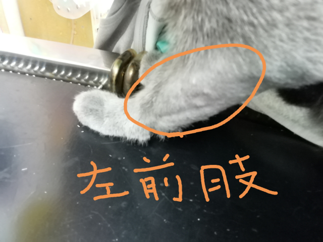 しかしその診察で、両前肢外側および下腹部から大腿内側にかけての外傷性脱毛を見つけました。飼い主さんも気づいておらず、私自身もこれまでの診察で記録していませんでした。